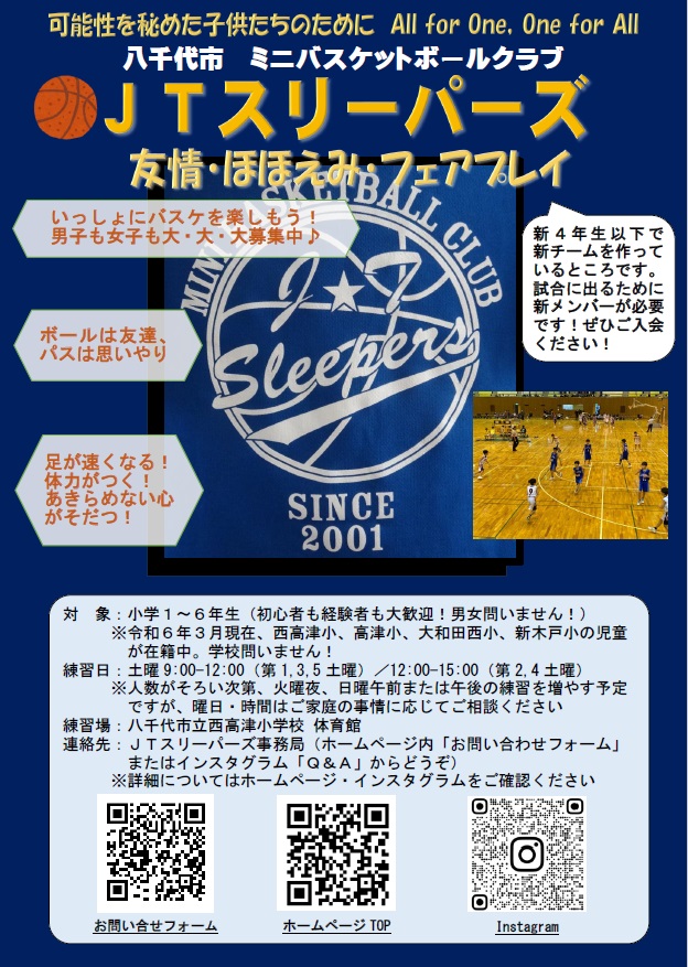 JTスリーパーズでは元気なメンバーを募集しています(男女問いません)