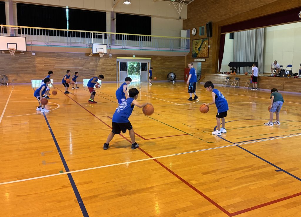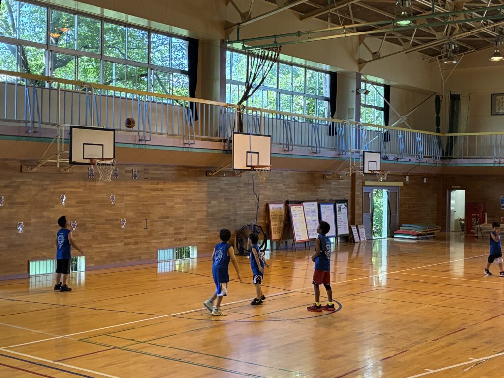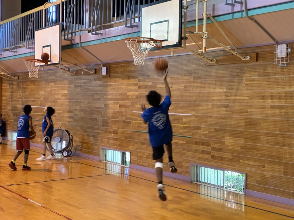 午後の練習になると、体育館の中はまさに蒸し風呂状態。WBGT値とこまめな水分補給に注意しながら、無理のないように運動しています。